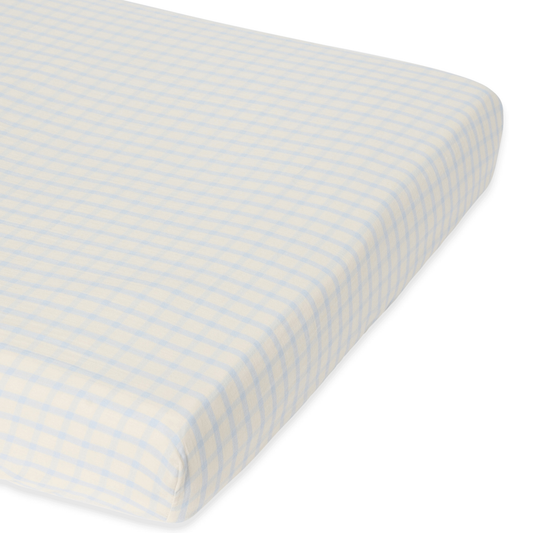 Hoeslaken - Muslin Fitted Sheet Junior - 70x140 - Biologisch katoen mousseline - Gingham Sky Blue - Garbo & Friends